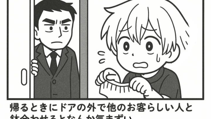 メンエスくんの1コマ漫画 その51「他のお客と鉢合わせるとなんか気まずい」