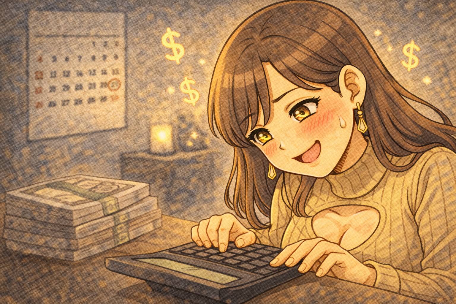 「月末最終日、電卓叩いて、総計にニヤニヤが止まらない」