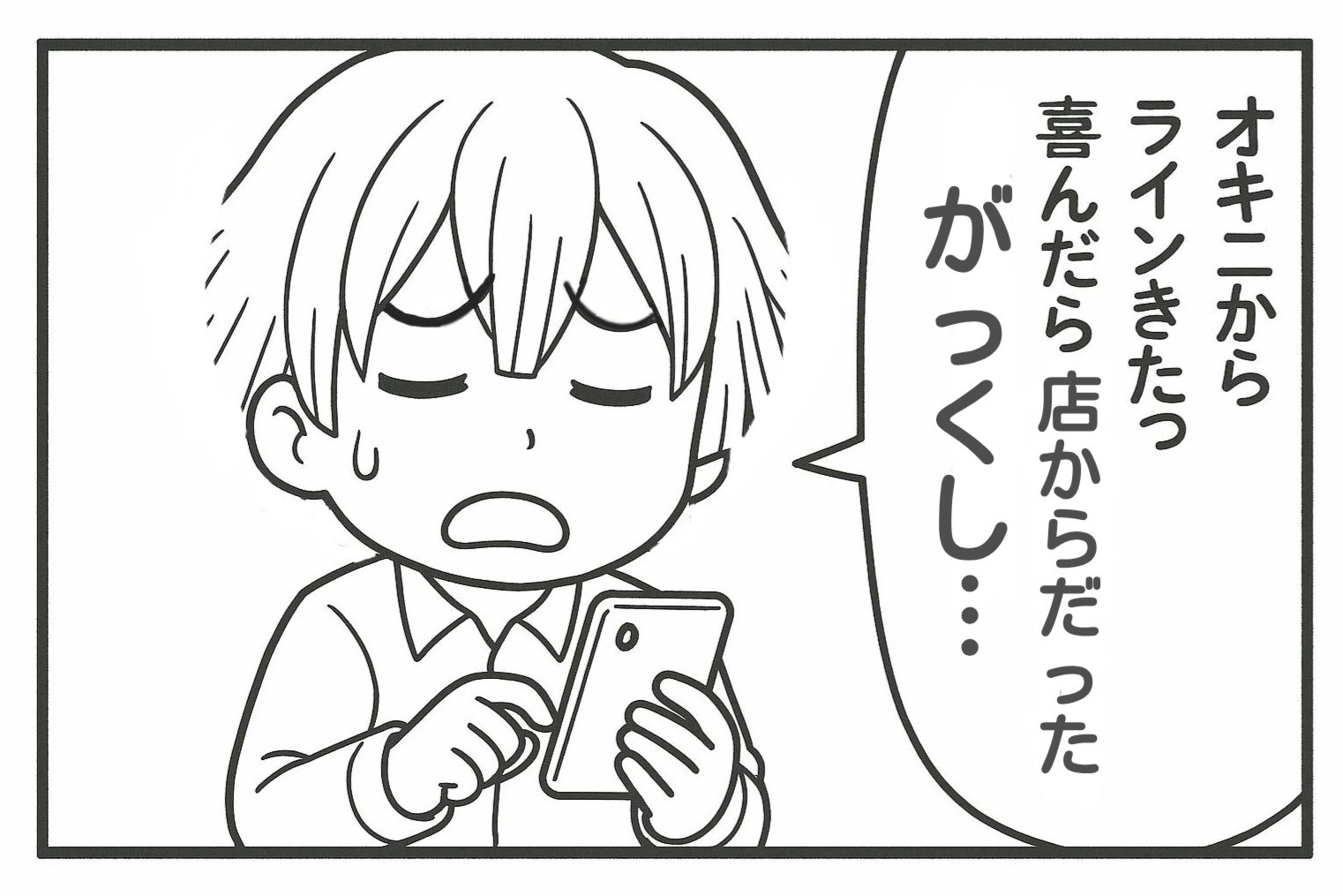 メンエスくんの1コマ漫画 その32「店からのラインだった…がっくし」