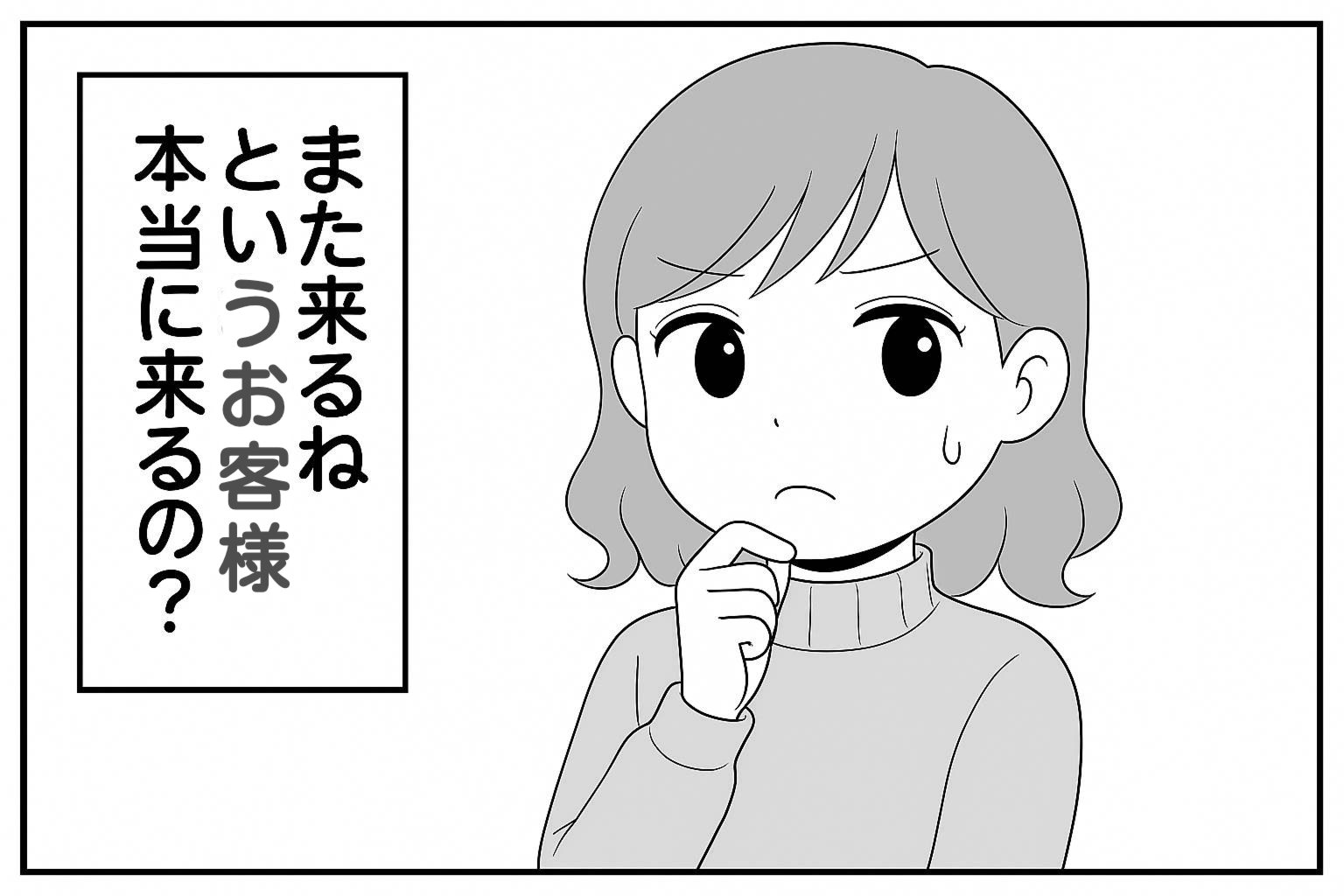もえみんの1コマ漫画 Aの73「また来るねというお客様本当に来るの?」