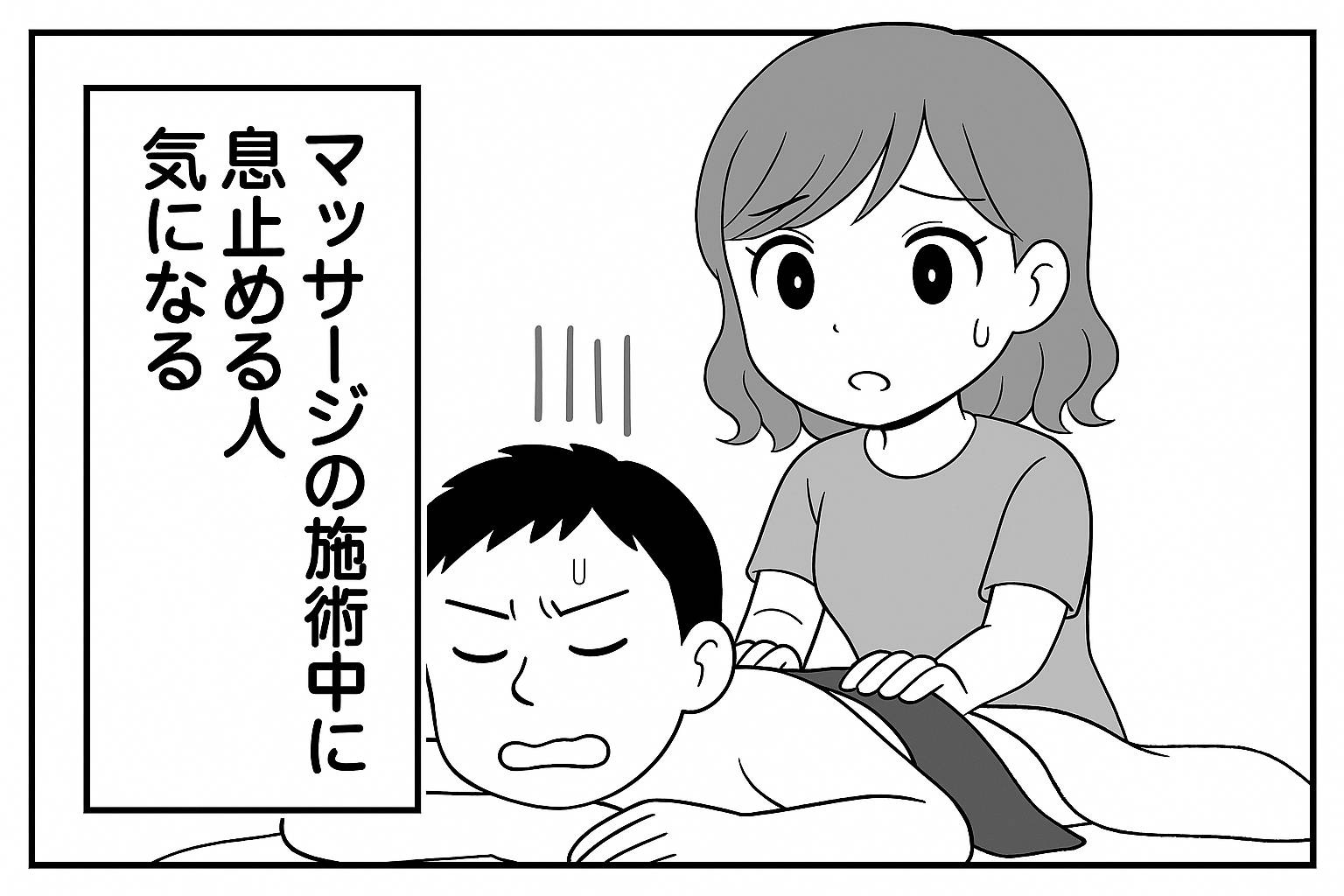 もえみんの1コマ漫画 Aの91「施術中に息止める人、気になる…」