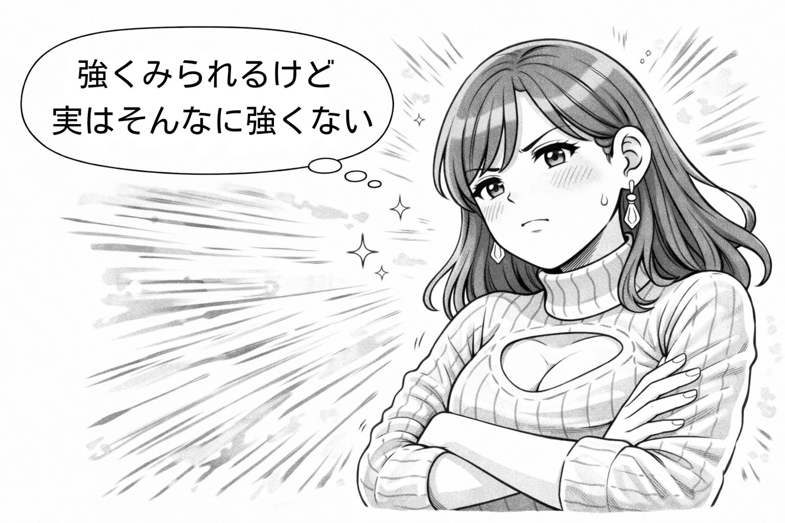 凄腕メンエス嬢、麗華の日常 99話 「強くみられるけど、実はそんなに強くない」 実は、強くみられるけど、強くないんだよね、 良く気が強い女は、プラ